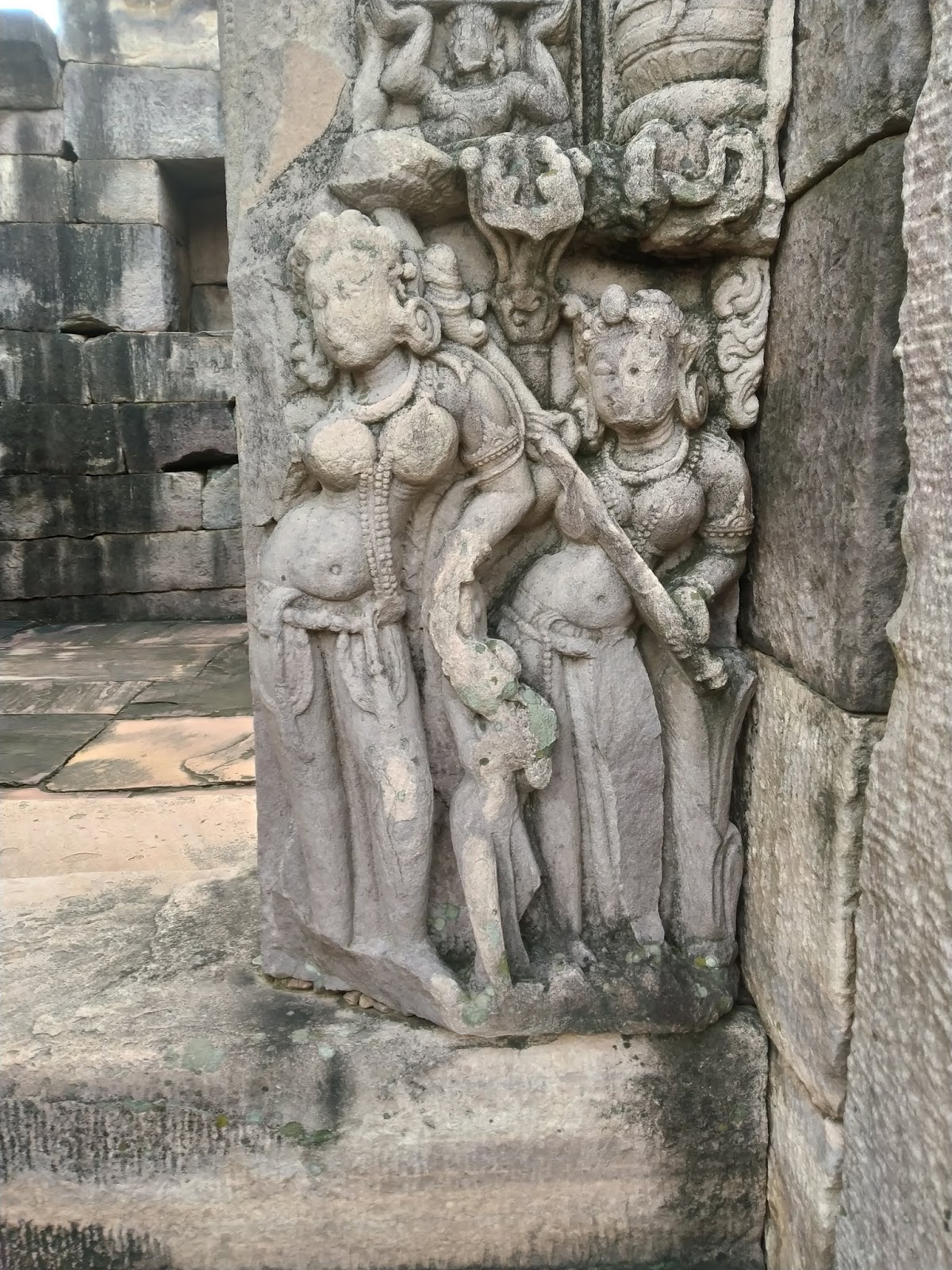 Cave 4 posses the famous grand carved relief of Bhu Varaha - Lord Vishnu as Varaha saving Godess Bhu Devi from the depths of primordial waters. It is perhaps the first representation of it's kind in the world. The carving also has miniature images of Gods, Asuras, Lord Varuna i.e, Samudra, River Godesses Ganga and Yamuna along with other celestial beings observing the event with reverential interest. Cave 6, attributed to one of the feudatories of Gupta Emperor Chandargupta II Vikramaditya has a carving of Lord Ganesha embedded on it's wall - perhaps the first of it's kind in India. Cave 9 is the famous Tawa cave - named as such because the roof resembles an upturned sauce-pan i.e, Tawa. En route to the top of the first hill - there's another wall embedded carving - Lord Vishnu as Narasimha - again, the first representation of it's kind. Thus, Udayagiri posseses so many firsts! Atop the second hill, there is an old granary and quary too!